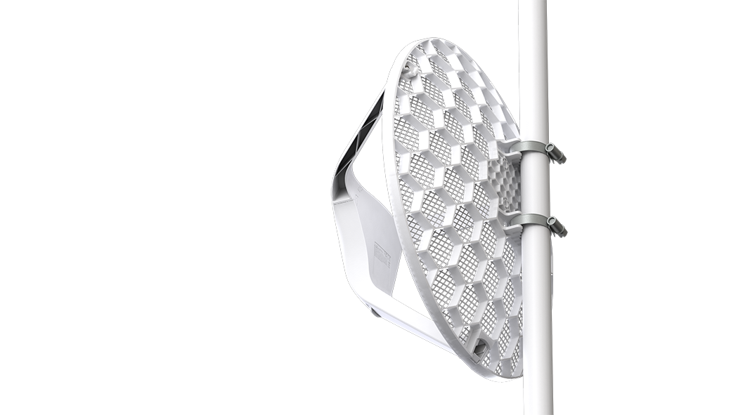 The LHG 5 is a compact and light 5GHz 802.11 a/n wireless device with an integrated dual polarization 24.5 dBi grid antenna at a revolutionary price. It is perfect for point to point links or for use as a CPE at longer distances and supports Nv2 TDMA protocol.